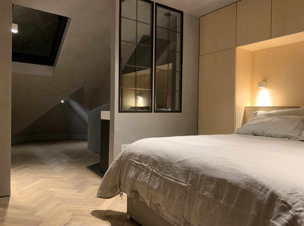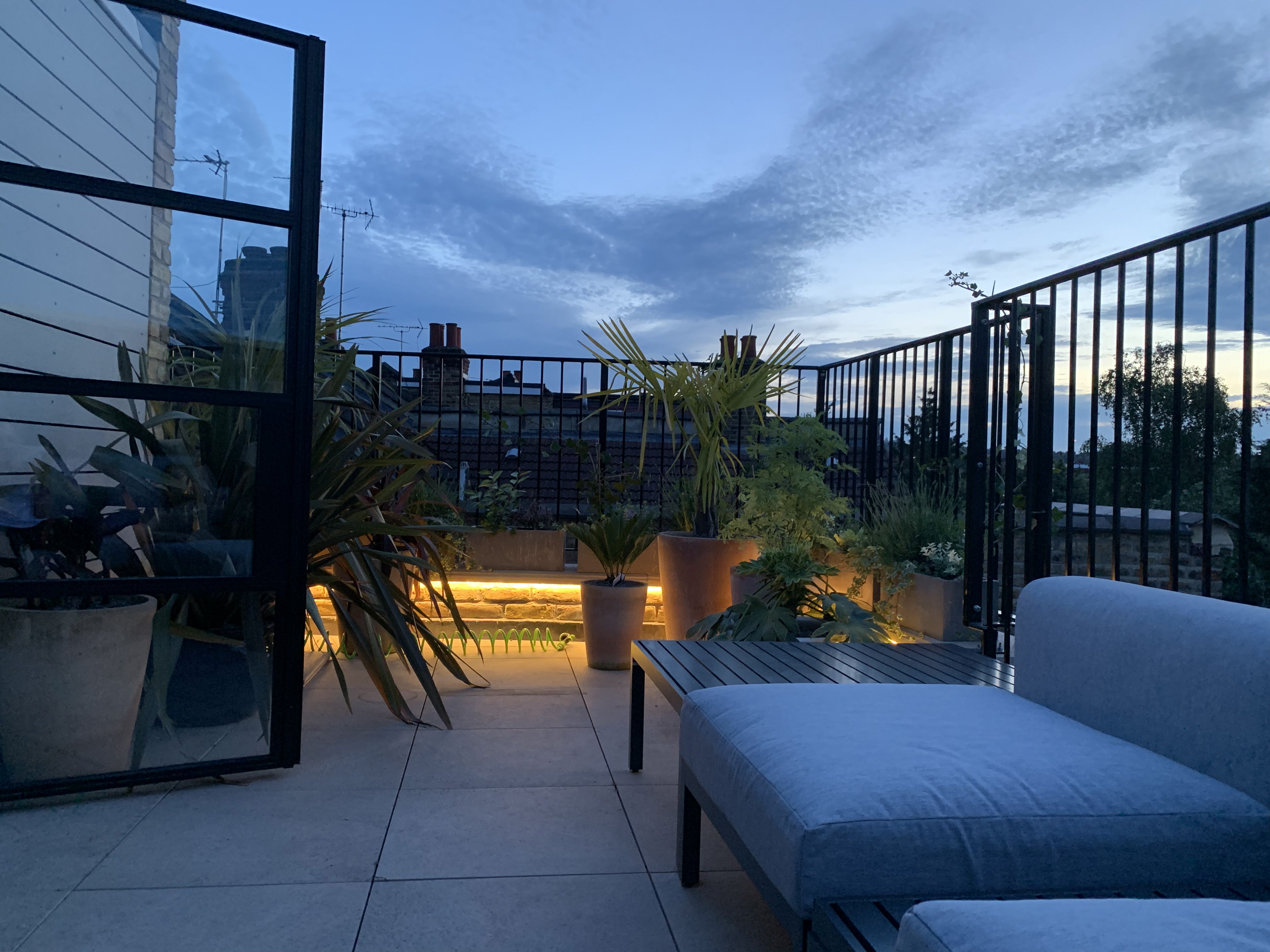 A loft extension added valuable living space and opened onto a tropical roof terrace with sweeping views across London, creating an urban sanctuary that blurs the line between indoors and outdoors. This new addition not only expanded the home's footprint but also introduced a unique lifestyle element, rare for the area.